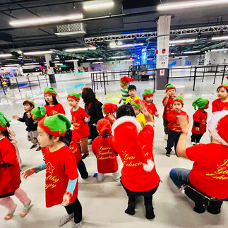 As soon as families arrived, Skycastle was filled with excitement.All the children wore their red or yellow IG-logo T-shirts, paired with adorable Christmas hats, instantly transforming the playground into a sea of bright holiday colors.
